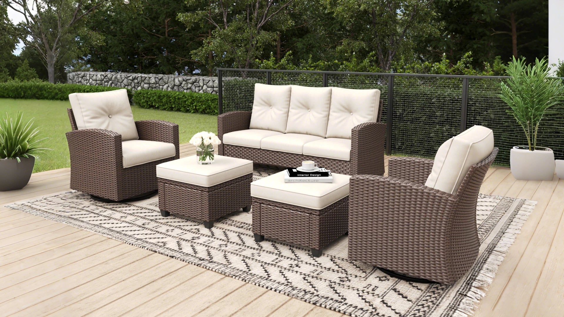 LayinSun 4 Pieces Traditional Patio Furniture Set with Wicker Swivel Chairs & Fire Pit Table5 reviewsRegular price $949.99Sale price $949.99 Regular priceUnit price / per