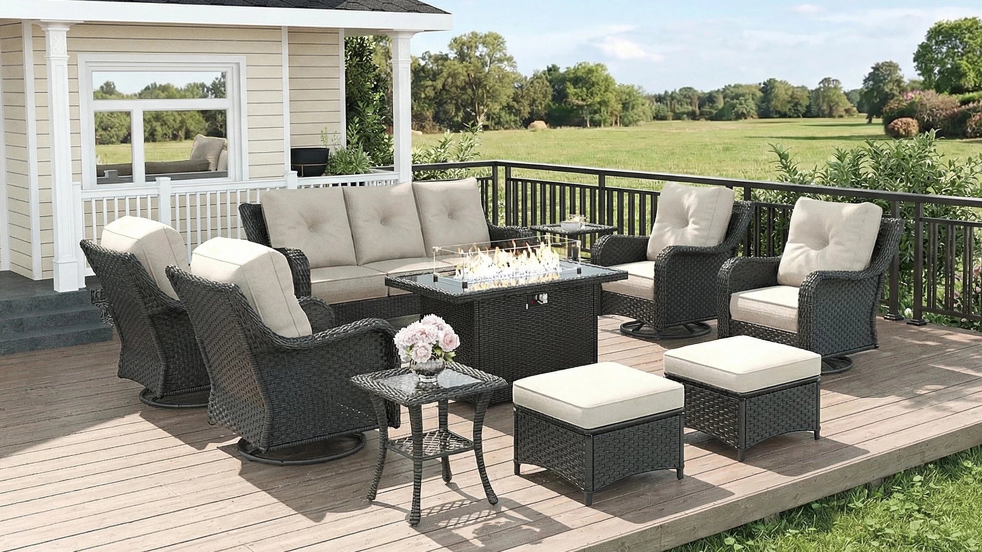 LayinSun 8 Pieces Traditional Patio Furniture Set with Wicker Swivel Chairs & Fire Pit Table5 reviewsRegular price $1,449.99Sale price $1,449.99 Regular priceUnit price / per