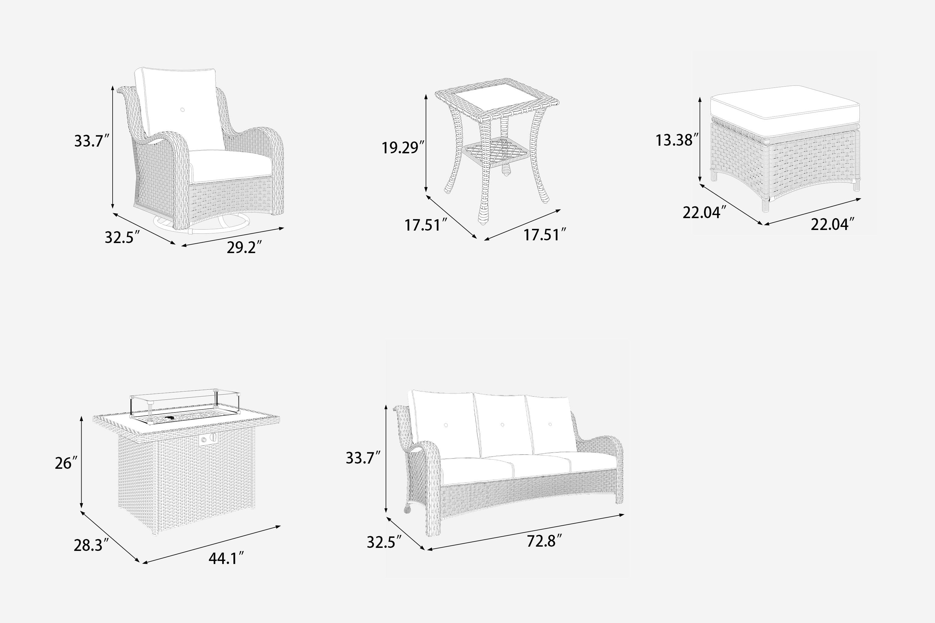 • The set include 4*swivel chairs, 2*ottomans, 1*sofa, 2* coffee tables and 1*fire table.