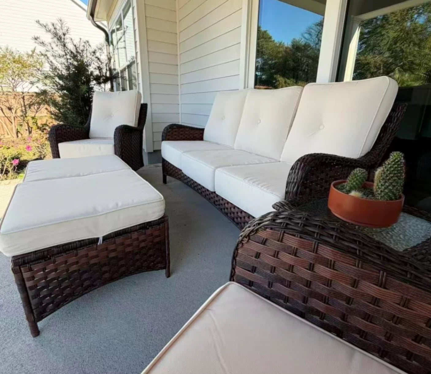 - Hand-woven wicker material resists fading and cracking even with long-term outdoor use.