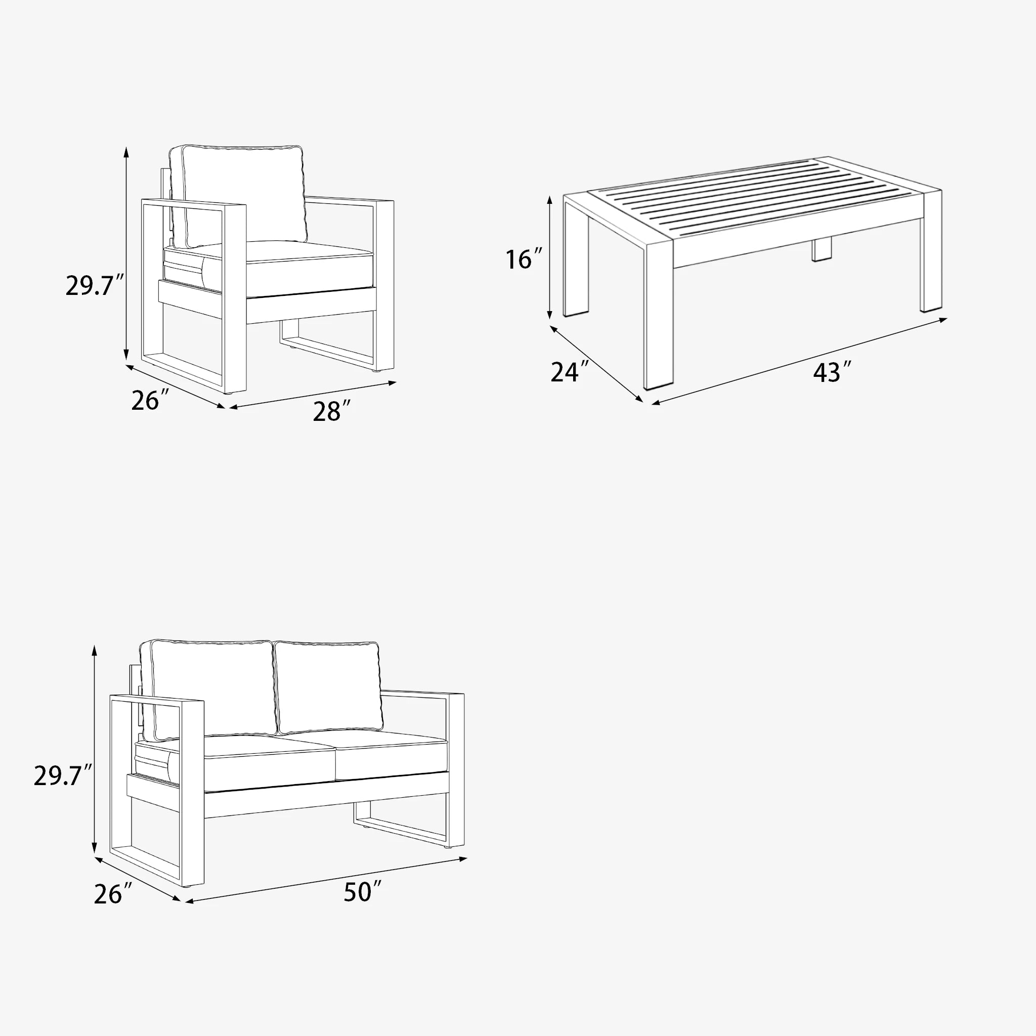 LayinSun 4 Piece Hight Back Aluminum Outdoor Loveseat Set with Coffee Table