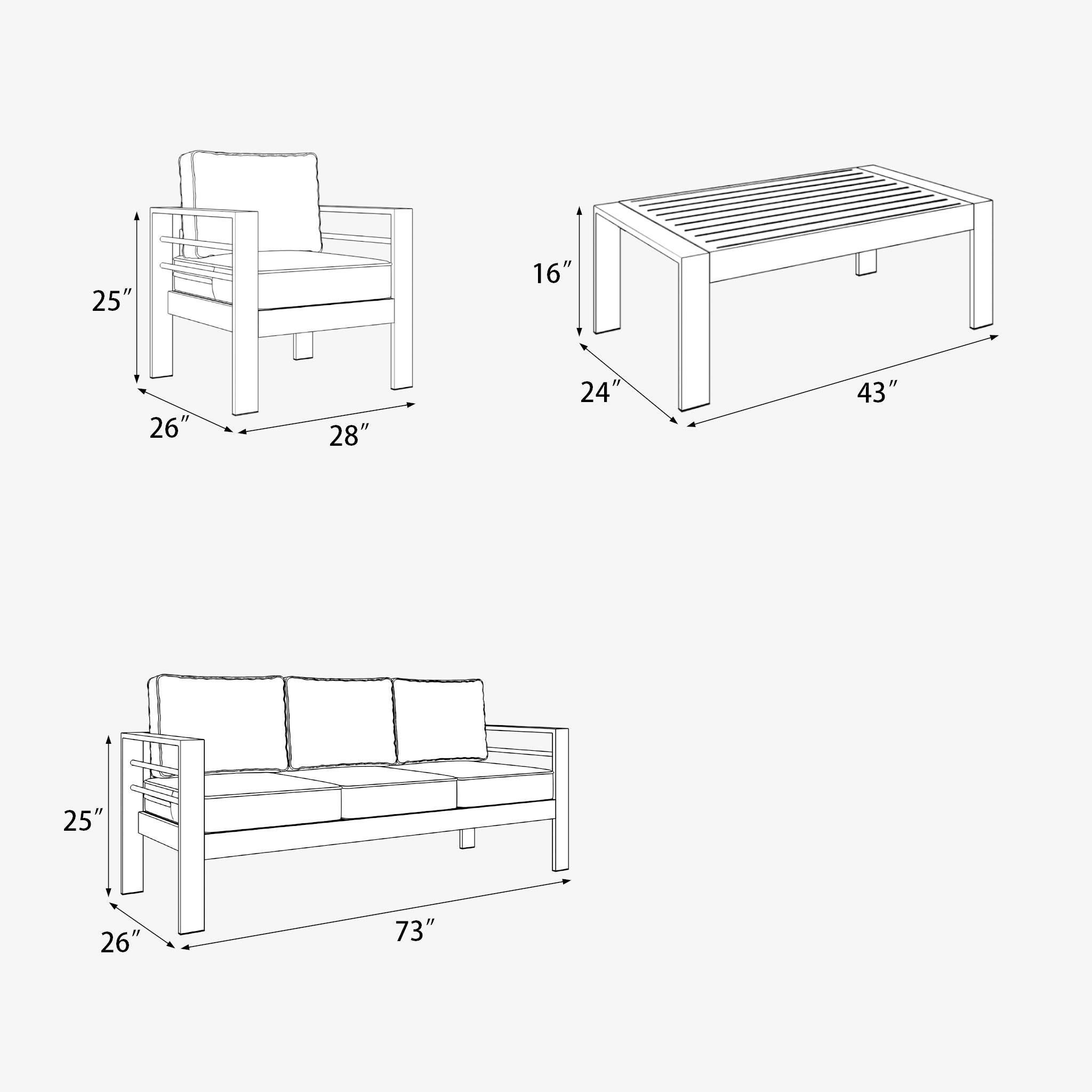 LayinSun 4 - Piece Outdoor Aluminum Sofa Set with Rectangle Coffee Table