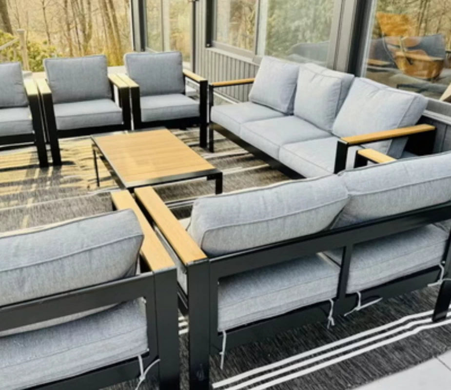 Aosta Collection outdoor furniture set is carefully crafted to blend clean lines with modern design. Whether you're lounging in the sun or enjoying a cool breeze, our furniture set is guaranteed to be comfortable, stylish and allow you to enjoy an outdoor lifestyle all year round. To enhance your outdoor space experience, each piece uses a durable and rust-resistant aluminum frame and is covered with premium powder coating that ensures longevity and resistance to rain and wind.
