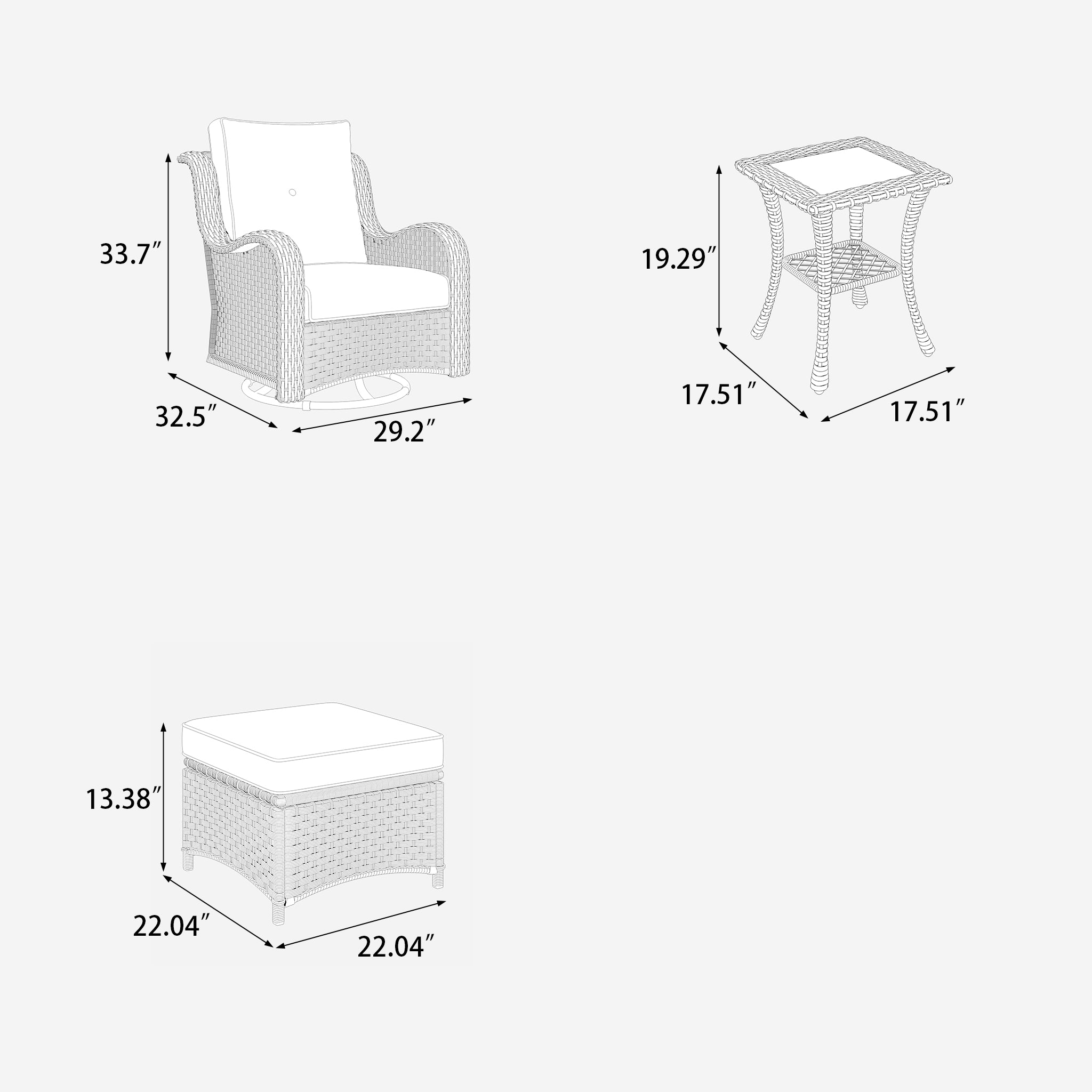 LayinSun 5 - Piece Curved Armrest Wicker Swivel Glider Lounge Chairs Set with Ottomans