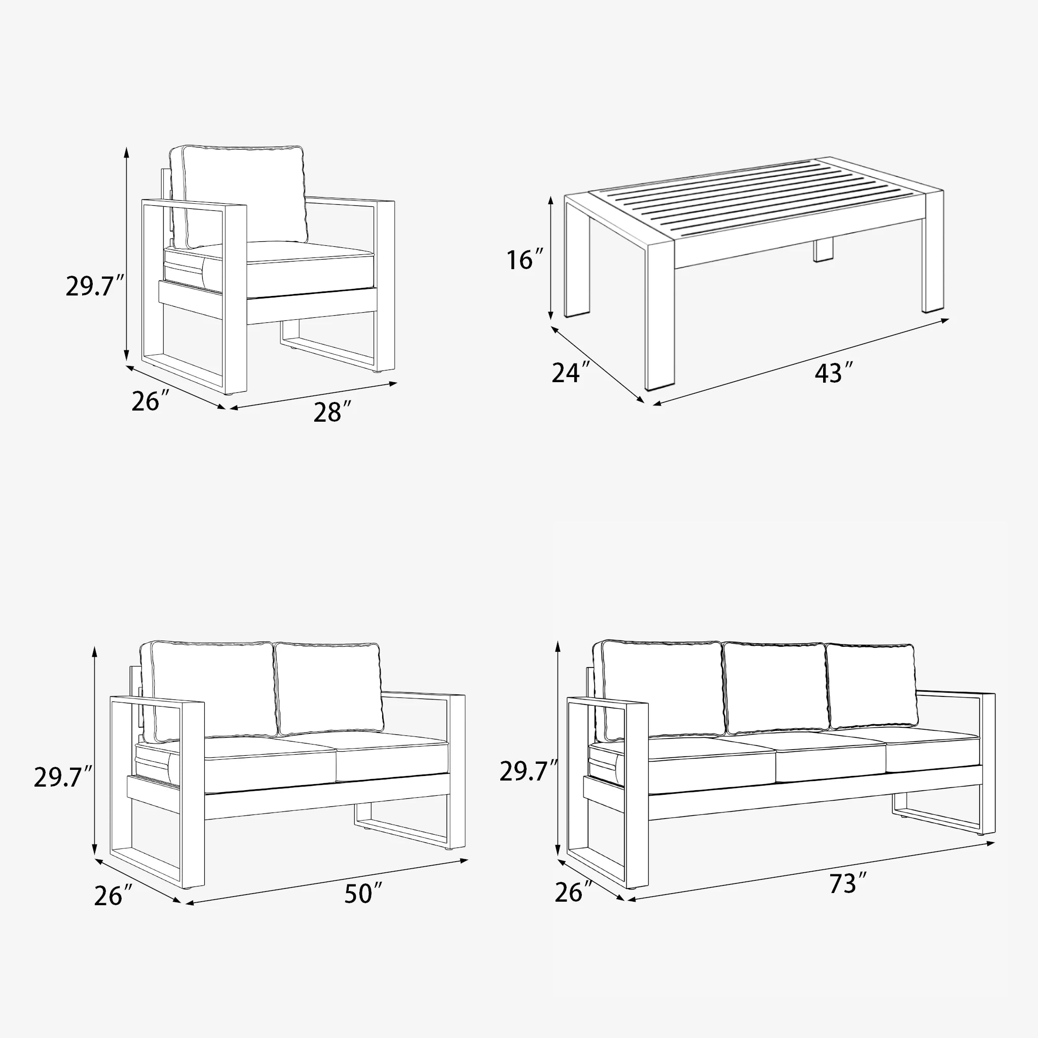LayinSun 5 Piece Hight Back Aluminum Outdoor Furniture Set with Coffee Table