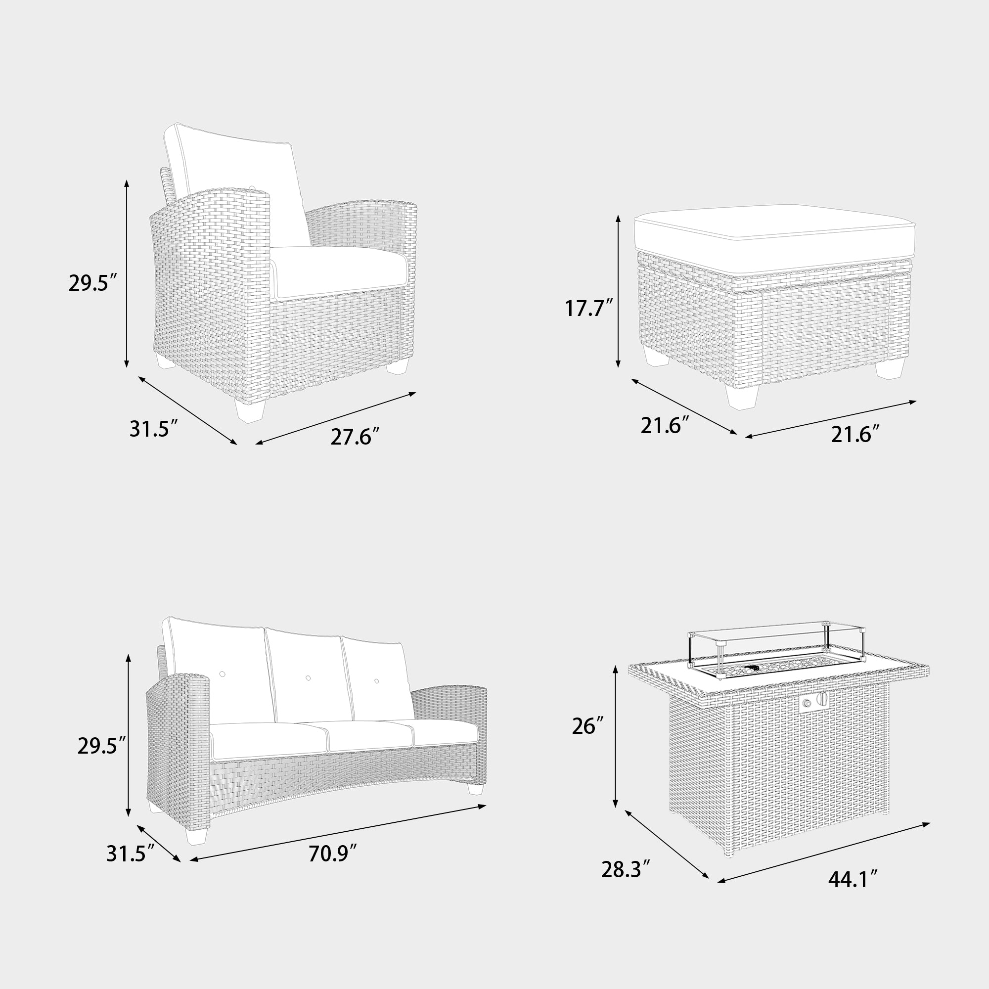 LayinSun 6 Pieces Traditional Patio Furniture Set with Wicker Armchair Chairs & Fire Pit Table