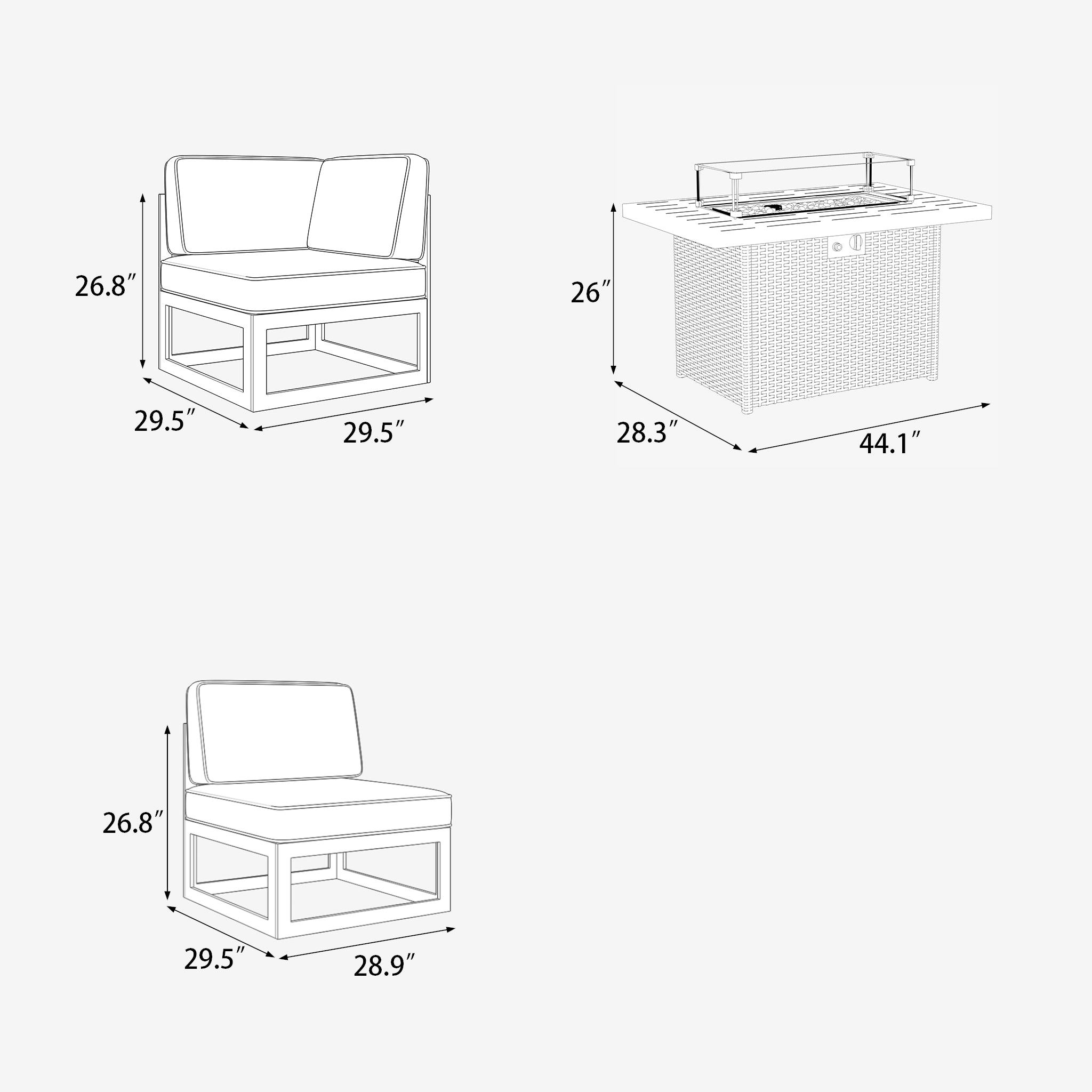 LayinSun 8 - Piece Large Outdoor Modular Sectional Set with Propane Fire Pit Table