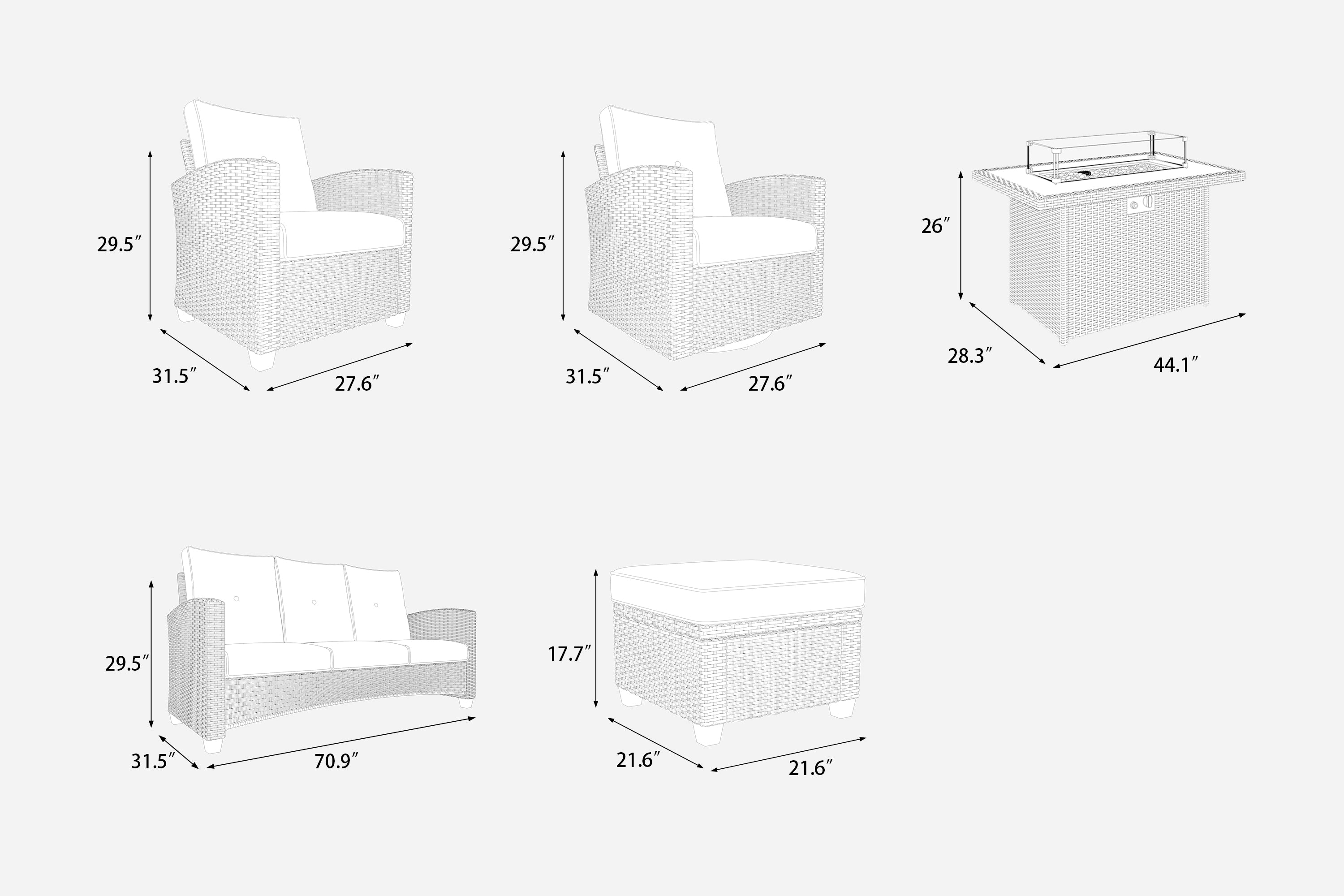 • Come with 44 inch Propane Gas Fire Table (propane tank not included).