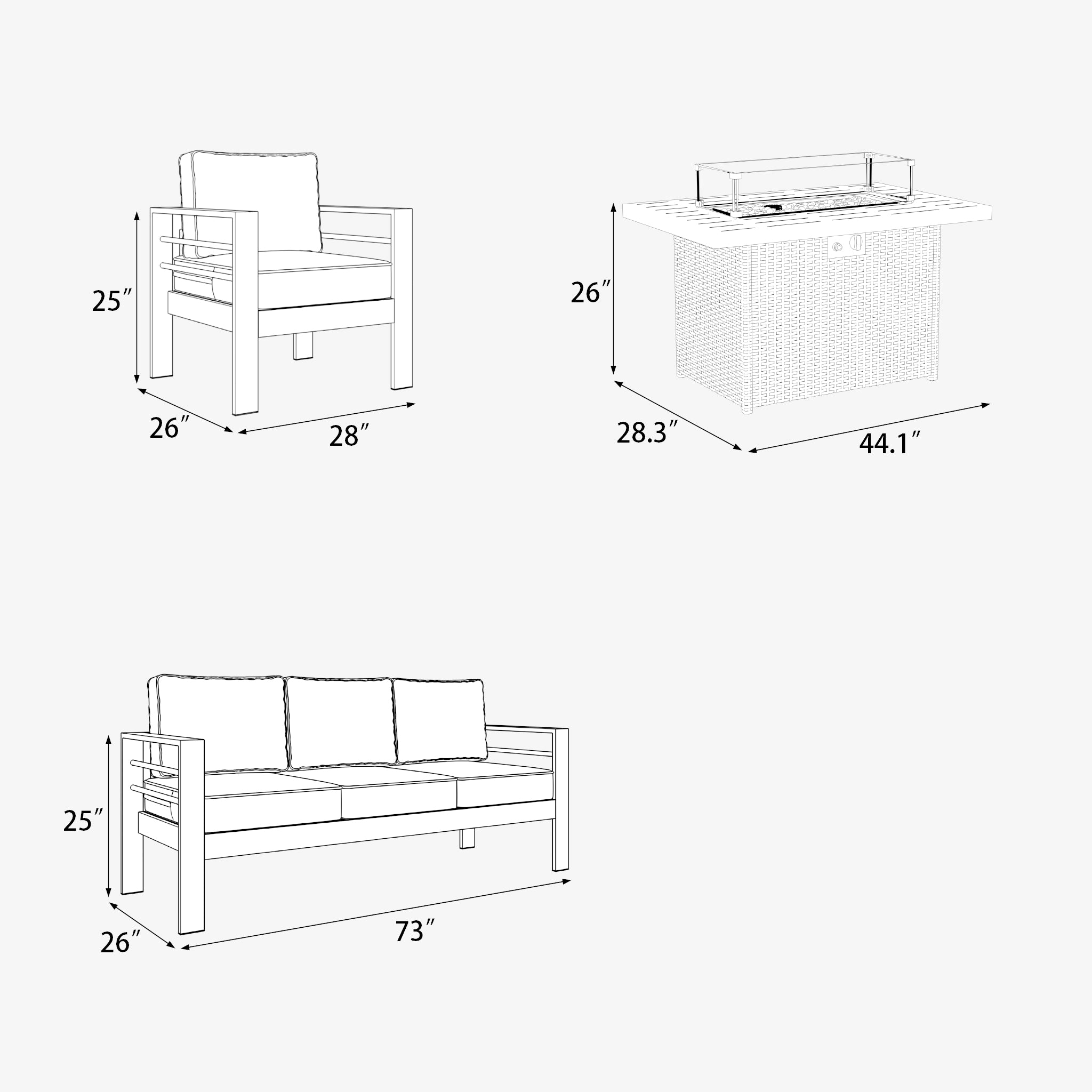 Furniture was easy to assemble and very comfortable. The couch easily seats 3 adults and the seating group fits nicely in a larger patio space.